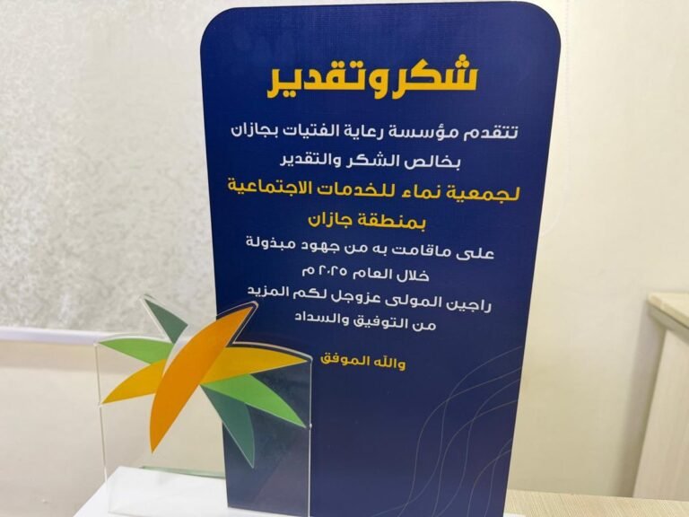 تكريم مؤسسة رعاية الفتيات بجازان لجمعية نماء تقديرًا لجهودها خلال عام 2025